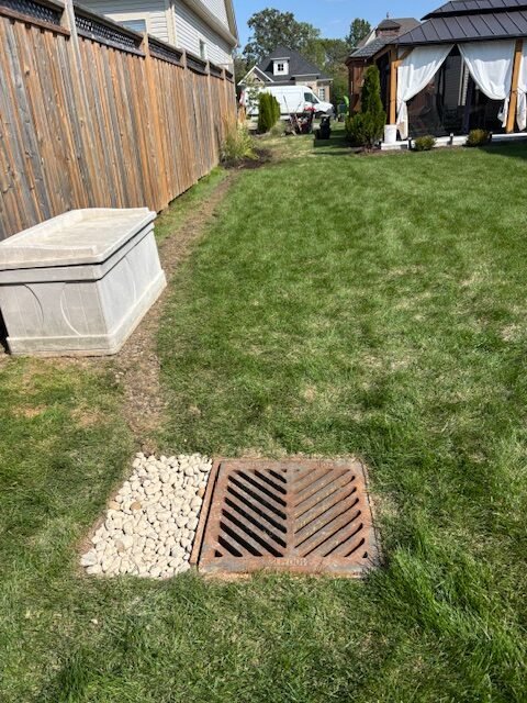 Drain installation completed and landscaped — improving water management while keeping the yard tidy.