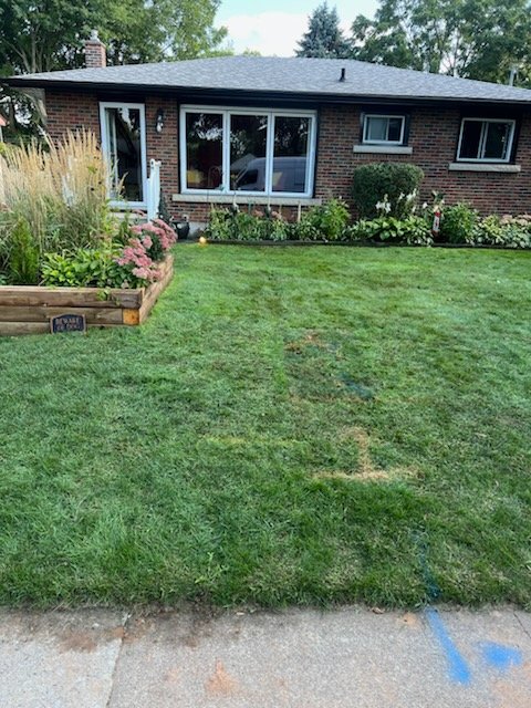 Lawn restored after sanitary line installation, ensuring the new underground system works smoothly.